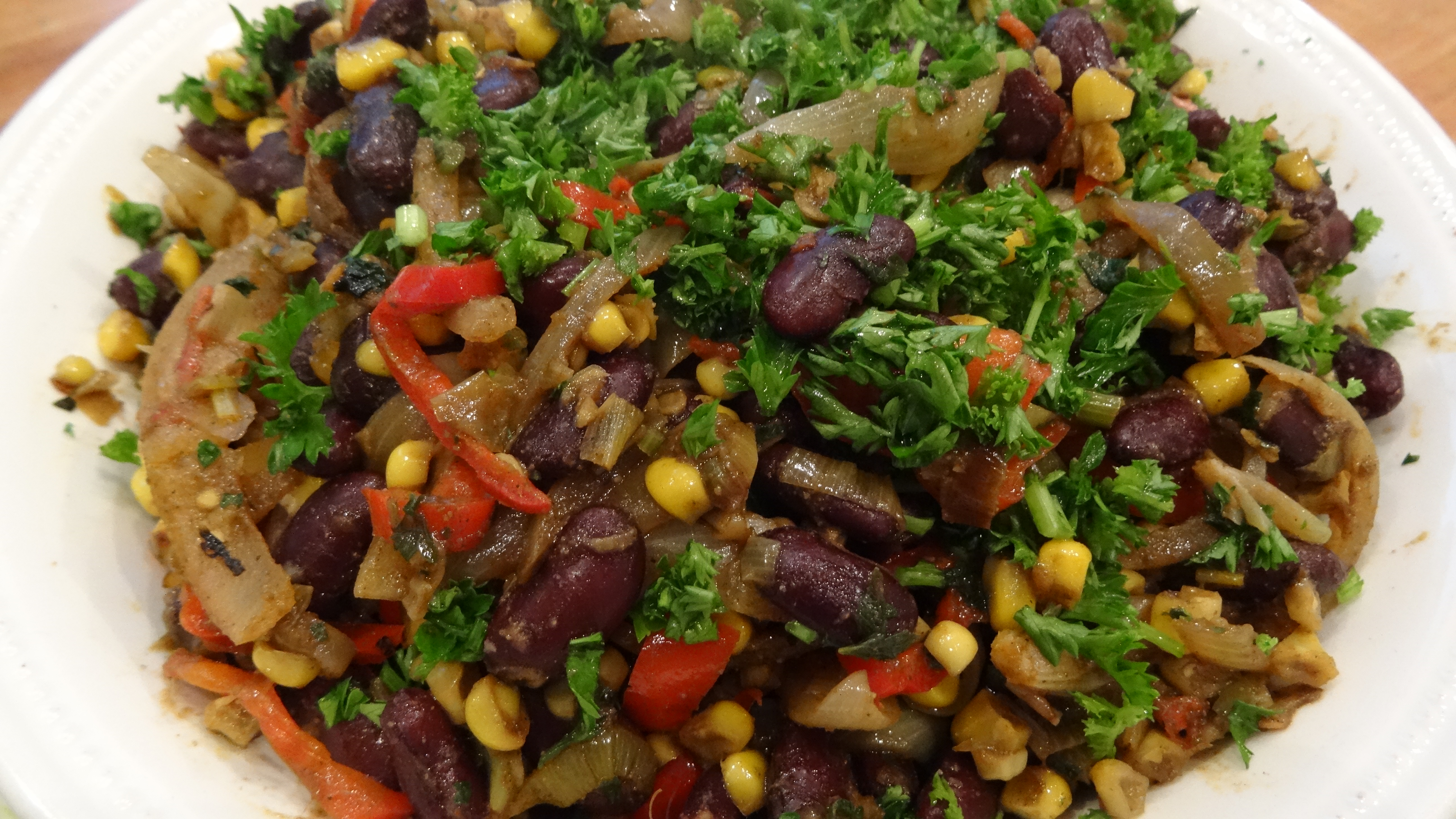 Hier kun je echt niets aan verprutsen 🙂 Snel klaar en heerlijk deze mais en bonen!