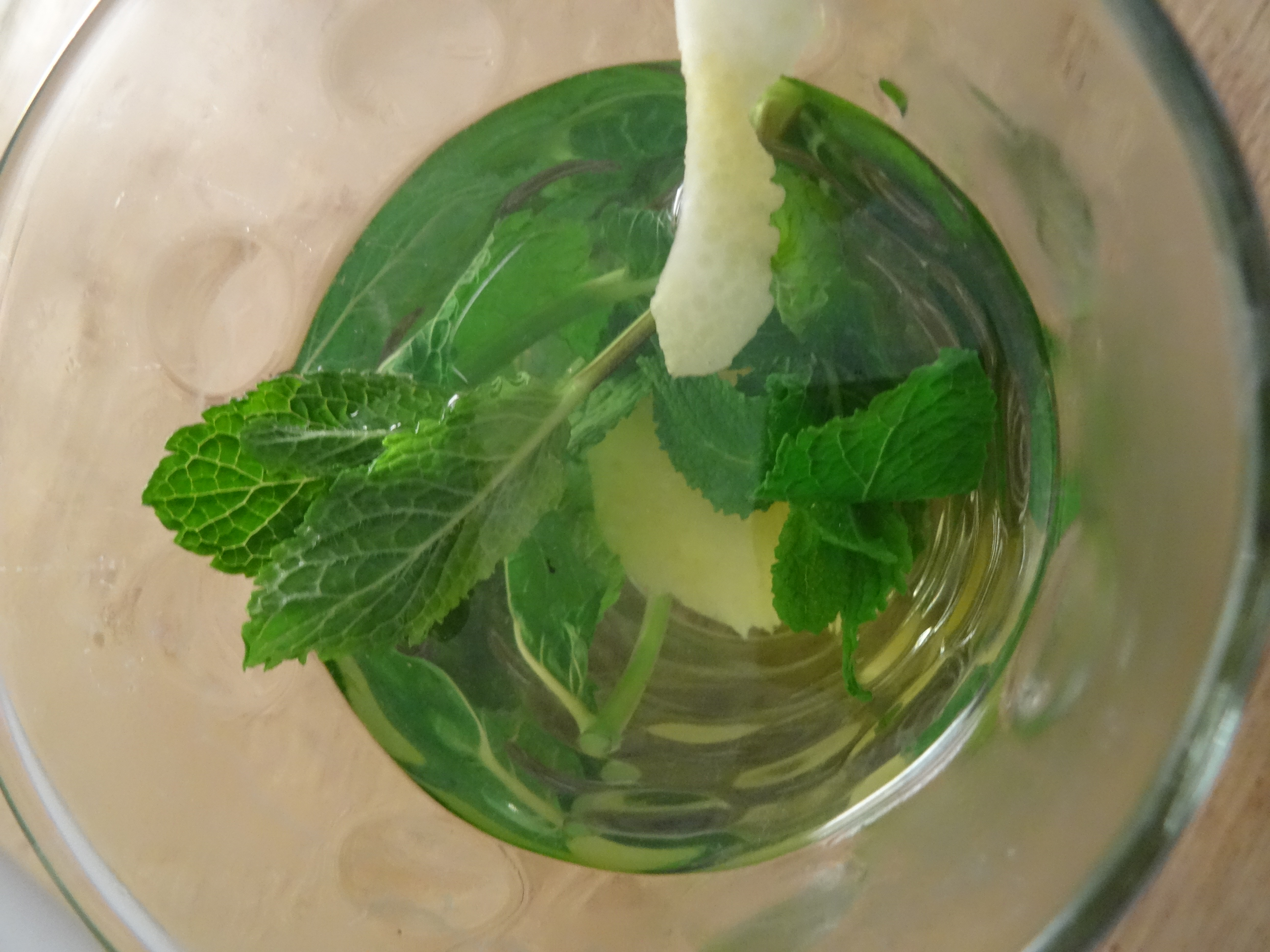 - Kook water voor een groot glas thee en laat het even doorkoken. Schenk het in het glad en voeg de takjes munt toe.