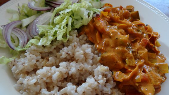• Serveer met een lekker knapperige rauwkostsalade en met zilvervliesrijst (of bulgur, volkoren pasta, gierst, boekweit, quinoa, aardappels of vis of zeevruchten of….).