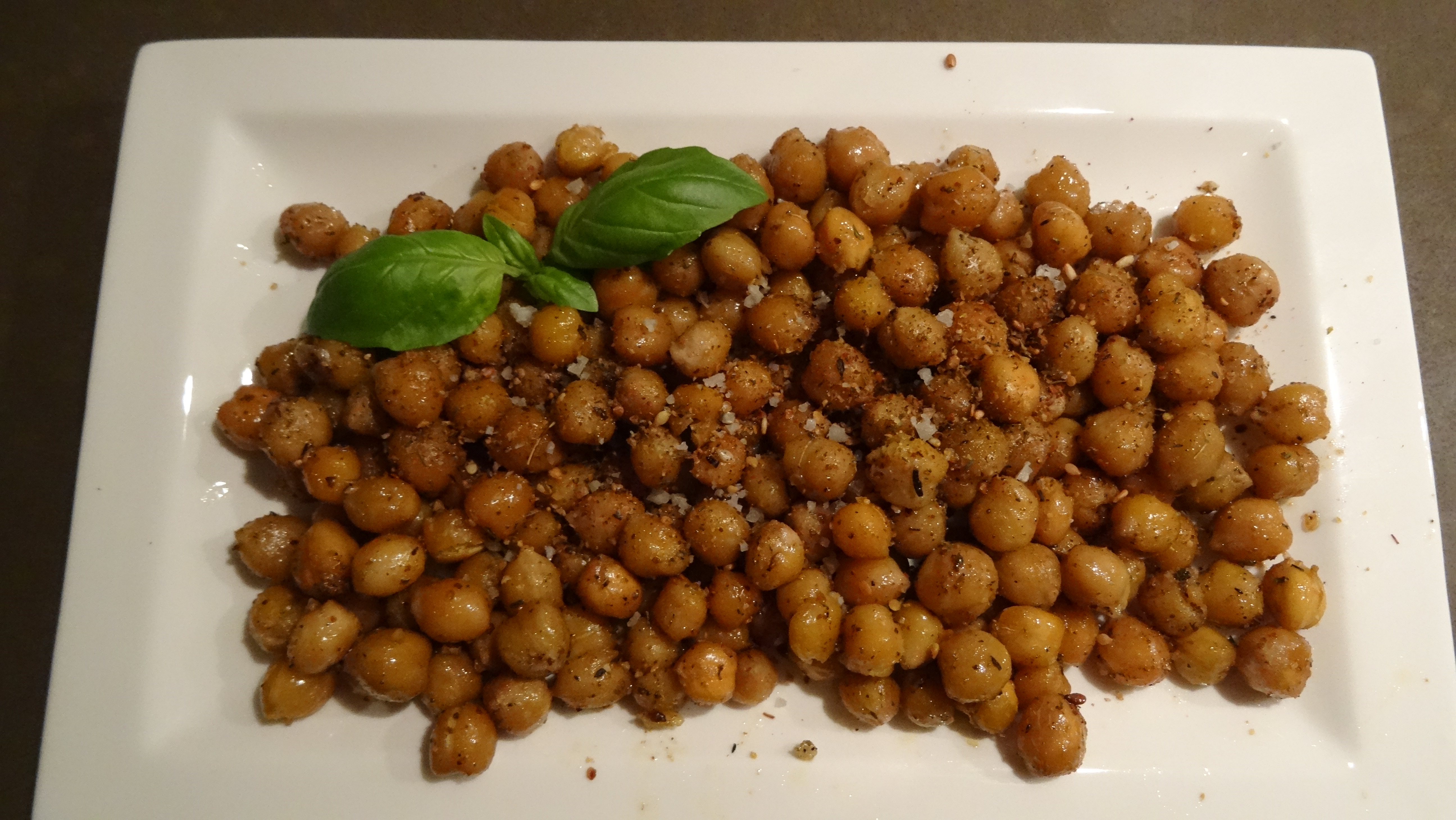 - Breng de kikkererwten goed op smaak met (Keltisch) zeezout, fijngehakte verse basilicum (als je voor za’atar hebt gekozen is dat echt een sublieme combi) en nog wat extra van de kruidenmix die je hebt gekozen. Warm zijn ze het lekkerst!